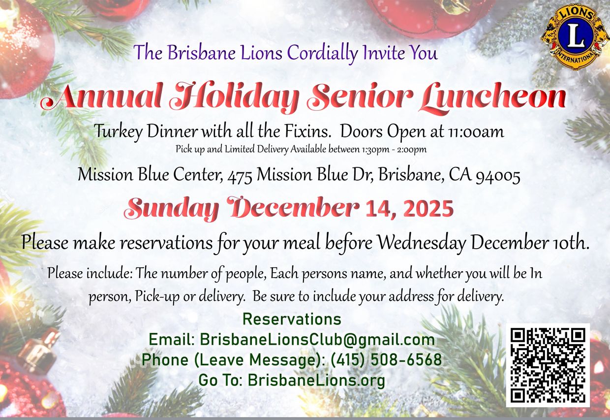 The tradition continues, we are back in person! The Annual Holiday Luncheon is once again back at Mission Blue Center on December 15th. This year you can choose to dine in at Mission Blue, or Pick up your lunch at Mission Blue. Make your reservations below. We'll see you soon!